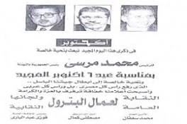 "نقابة البترول" تكشف حقيقة إعلان انتصار أكتوبر في عهد الرئيس المخلوع محمد مرسي أصدرت النقابة العامة للعاملين بالبترول، بيانا كشفت خلاله حقيقة ما جاء في إعلان النقابة العامة في ذكرى انتصار 6 أكتوبر عام 2012، والذي تم نشره في مجلة ...
