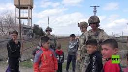 بالفيديو.. قوات أمريكية تتجول في قرية سورية بالحسكة مع تحليق للحوامات الأمريكية بالمنطقة وأفاد مراسلنا بأن القوات الأمريكية تجولت في القرية بالتزامن مع تحليق للحوامات الأمريكية حيث التقى ضابط أمريكي برفقة جنوده مع السكان المحليين.