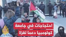 وقفة احتجاجية في جامعة كولومبيا الأمريكية رفضا للإجراءات المتخذة ضد طلاب متضامين مع غزة تشهد جامعة كولومبيا الأمريكية وقفة احتجاجية مناهضة للحرب على قطاع غزة وتحتج على الإجراءات المتخذة ضد طلاب متضامنين في الجامعات الأمريكية مع غزة.
