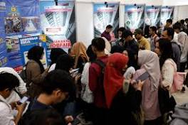 باحثون عن وظائف إندونيسيا - الاقتصادية إندونيسيون يصطفون بالقرب من كشك شركة تعرض وظائف شاغرة خلال معرض جاكرتا للوظائف. ووفقا للوكالة المركزية للإحصاء، بلغ عدد القوى العاملة 153.05 مليون ...