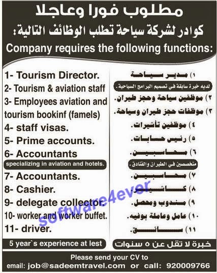 - وظائف جريدة الوسيط 12/11/2014 - وظائف السعودية اليوم - وظائف السعودية - وظائف 19 محرم 1436 - وظائف شاغرة فى شركة كبرى فى مجال السياحة والفنادق لعدد من التخصصات - وظائف معلمين تخاطب - وظائف مركز طبى راقى - وظائف نسائية شاغرة - وظائف محلات عصير - وظائف وكالة دعاية واعلان - وظائف مطاعم - وظائف شركة سياحة - وظائف مجموعة فنادق - وظائف مؤسسة مقاولات - وظائف 19/1/1436