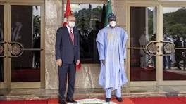 ثالث محطاته الإفريقية.. رئيس نيجيريا يستقبل أردوغان بمراسم رسمية الرئيسان يعقدان اجتماعا على مستوى وفدي البلدين، يليه حفل توقيع اتفاقيات مشتركة ومؤتمر صحفي. 20.10.2021. ثالث محطاته الإفريقية.